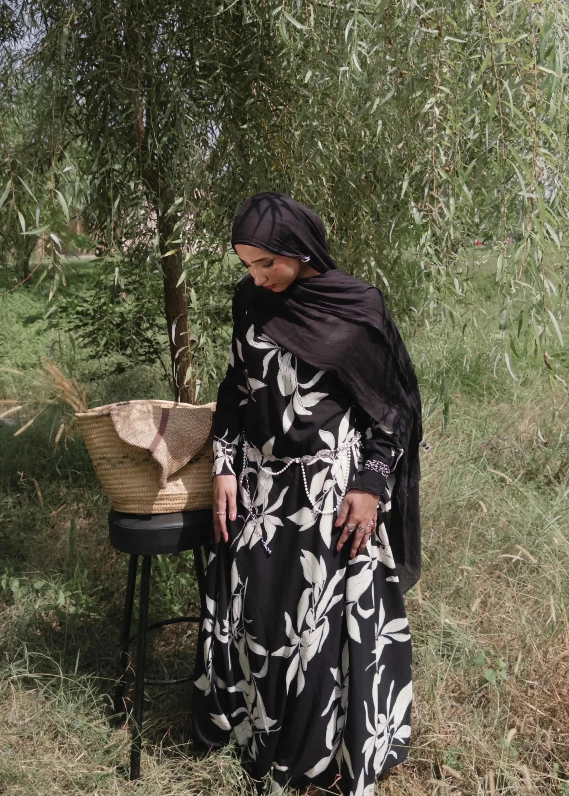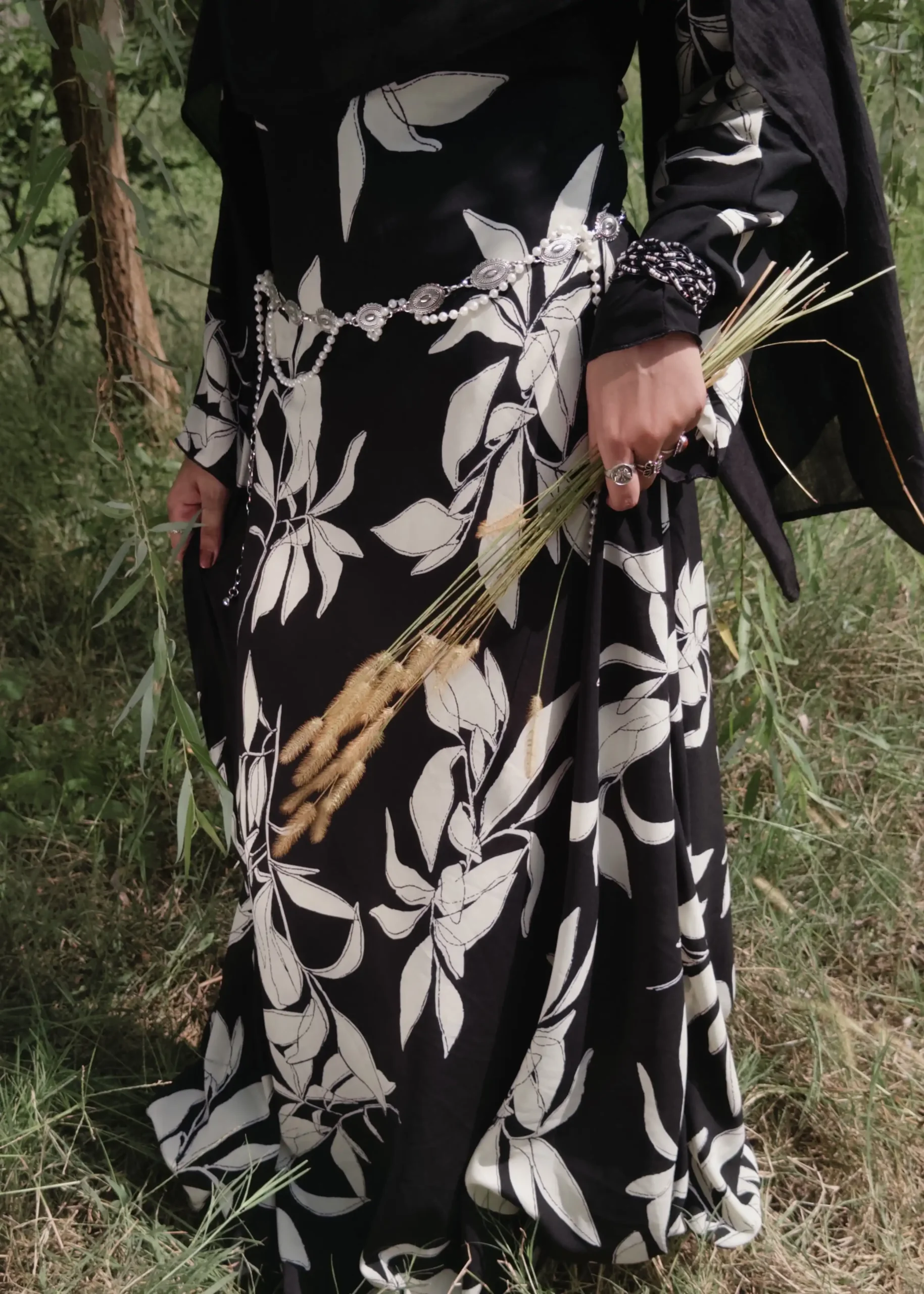 Crafted from airy georgette grip, this monochrome beauty flows with ease. Featuring breezy flared sleeves and a stylish lace-up back, it offers a refined yet contemporary look perfect for any occasion.